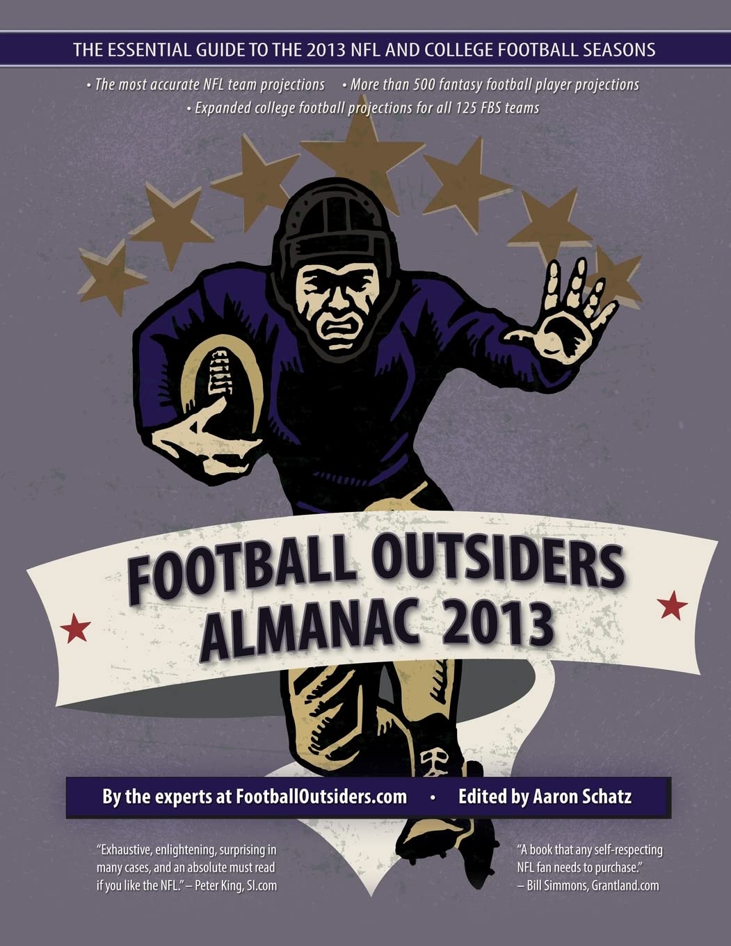 The most authoritative and innovative guide to professional football (previously known as 'Pro Football Prospectus') is back for an allnew season with more cuttingedge statistical analysis, obsessive film study, and trademark humor. Includes comprehensive coverage of all 32 NFL teams, analysis of offseason personnel changes, over 500 KUBIAK fantasy football projections, and breakdowns of every team from the six BCS conferences plus the top independent and midmajor college football teams. With numerous statistical measures that go far beyond standard NFL stats, Football Outsiders Almanac 2013 gives NFL fans the kind of sabermetriclike statistical analysis that revolutionized the fan's understanding of baseball. It's also written with a knowing dry wit that gets under the skin of America's most popular spectator sport. Groundbreaking team and player DVOA ratings that correct for situation and opponent to reveal which offenses and defenses are truly superior, and which players really help win games. Exclusive data from the Football Outsiders Game Charting Project, unavailable in standard NFL stats, tells you which running backs face the most men in the box; which quarterbacks benefit the most from yards after catch; which teams most often blitz or run specific offensive formations; and which defensive backs stop the other team's passing game, measured by pass coverage on every single play rather than just tackles. Detailed information on each team's performance in 2012 by offensive and defensive personnel package. NEW FOR 2013: Detailed individual stats for offensive linemen. Extensive coverage of all 32 teams with weekbyweek stats from the 2012 season, fiveyear performance trends, and analysis of offseason personnel changes. Exclusive 2013 predictions that give the odds on each team as a Super Bowl contender ... or a contender for the top pick in the 2014 draft. 2013 fantasy football projections for more than 500 skill position players based on the KUBIAK forecasting system. Breakdowns on more than 75 different college football teams and full winloss projections for all 125 Division IA (FBS) teams. 'A book that any selfrespecting NFL fan needs to purchase.' Bill Simmons, GRANTLAND.com 'Football Outsiders has now built a system that has some serious traction behind it. I personally find it fascinating.' John Schneider, General Manager, Seattle Seahawks 'The most accurate insight into why teams really win and lose.' Jim Schwartz, head coach of the Detroit Lions