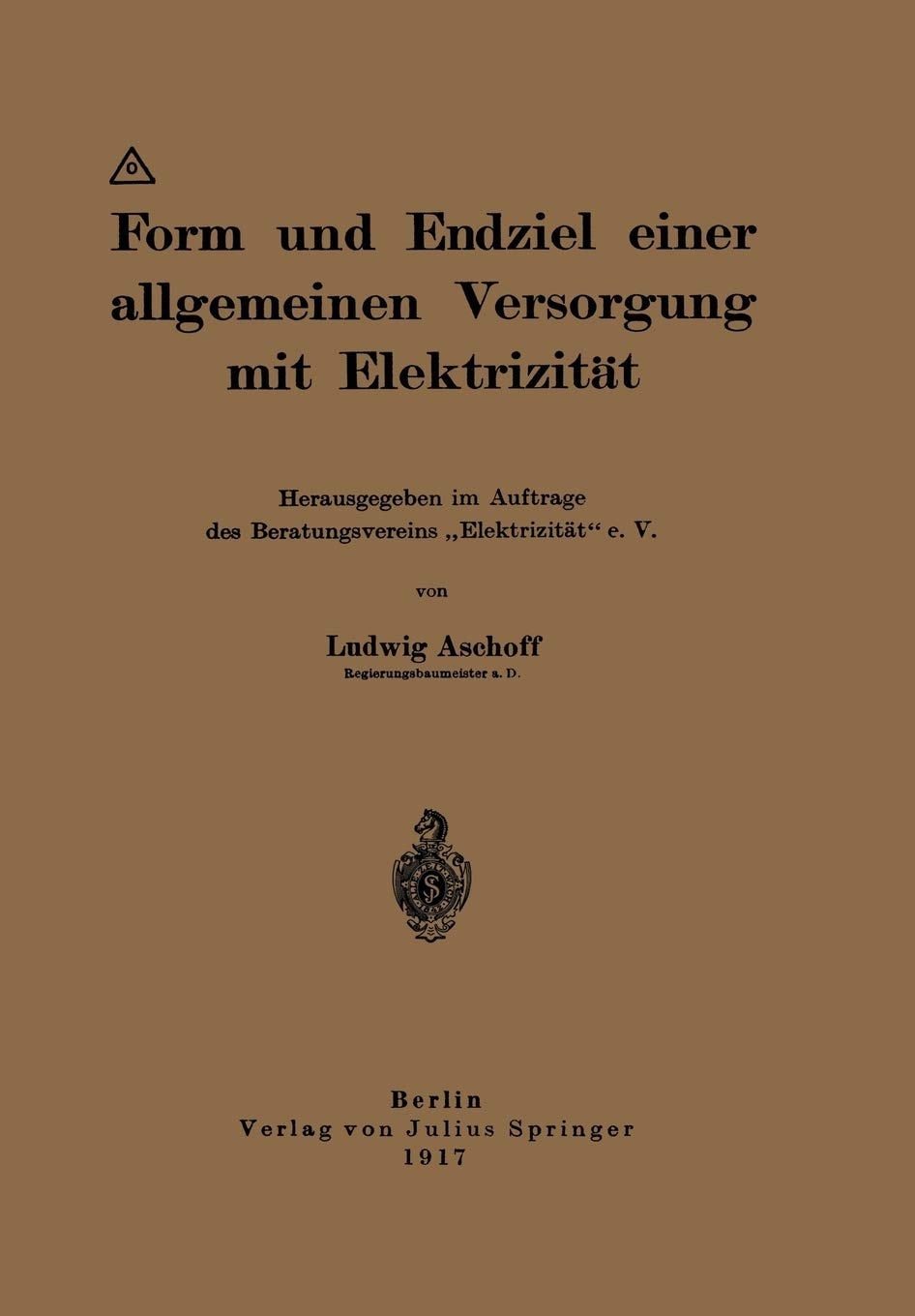Form und Endziel einer allgemeinen Versorgung mit Elektrizitt: Herausgegeben im Auftrage des Beratungsvereins Elektrizitt e. V. ,Used