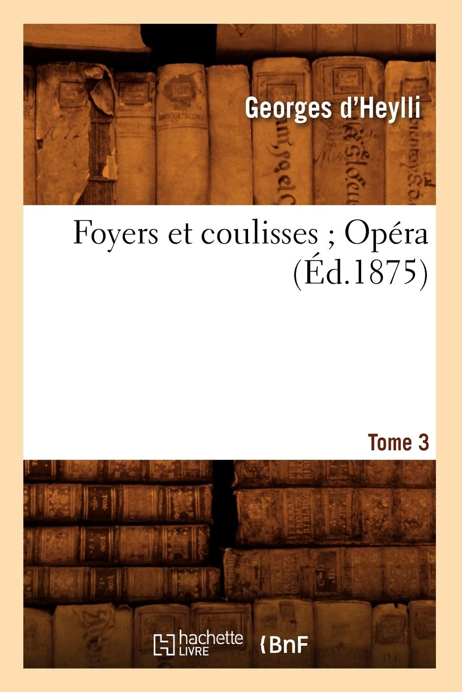 Foyers et coulisses; 8. Opra. Tome 3 / par Georges d'HeillyDate de l'dition originale: 1875Le prsent ouvrage s'inscrit dans une politique de conservation patrimoniale des ouvrages de la littrature Franaise mise en place avec la BNF.HACHETTE LIVRE et la BNF proposent ainsi un catalogue de titres indisponibles, la BNF ayant numris ces oeuvres et HACHETTE LIVRE les imprimant la demande.Certains de ces ouvrages refltent des courants de pense caractristiques de leur poque, mais qui seraient aujourd'hui jugs condamnables.Ils n'en appartiennent pas moins l'histoire des ides en France et sont susceptibles de prsenter un intrt scientifique ou historique.Le sens de notre dmarche ditoriale consiste ainsi permettre l'accs ces oeuvres sans pour autant que nous en cautionnions en aucune faon le contenu.Pour plus d'informations, rendezvous sur www.hachettebnf.fr