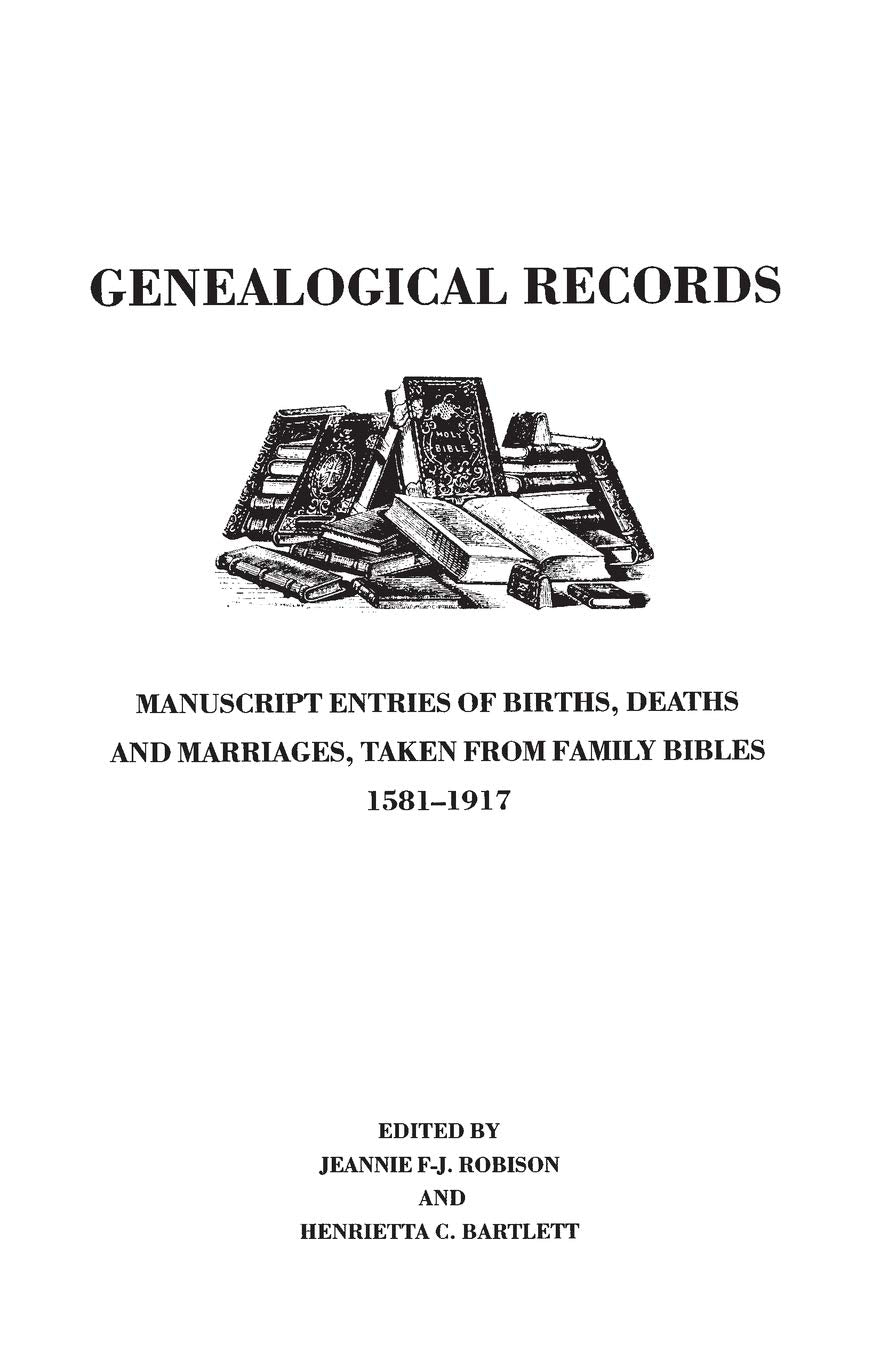Genealogical Records : Manuscript Entries Of Births, Deaths And Marriages, Taken From Family Bibles, 15811917,New