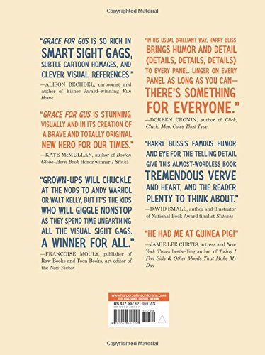 * 3 starred reviews * Kirkus Best Books of 2018 * CCBC Choice for 2019 * Bank Street Best Children's Book of the Year 2019 (59)*Bestselling cartoonist and master visual storyteller Harry Bliss has concocted a delightful, near wordless graphic picture book with nods to famous cartoons, cultural icons, and the secret lives that creative people make for themselves.Grace is the quiet girl in the class. And Gus is the class guinea pig.Grace knows that Gus is lonely, and so she sets off one night to help out her furry friend.Wherever she goes, Grace amazes and delights as she shares her many talents, showing how one person with a little pizzazz can make a difference.Praise for Grace for Gus:Grace for Gus is so rich in smart sight gags, subtle cartoon homages, and clever visual references. Alison Bechdel, cartoonist and author of the Eisner Awardwinning Fun HomeHe had me at Guinea Pig! Jamie Lee Curtis, actress and New York Times bestselling author of Today I Feel Silly & Other Moods That Make My DayIn his usual brilliant way, Harry Bliss brings humor and detail (details, details, details) to every panel. Linger on every panel as long as you cantheres something for everyone. Doreen Cronin, author of Click, Clack, Moo: Cows That Type