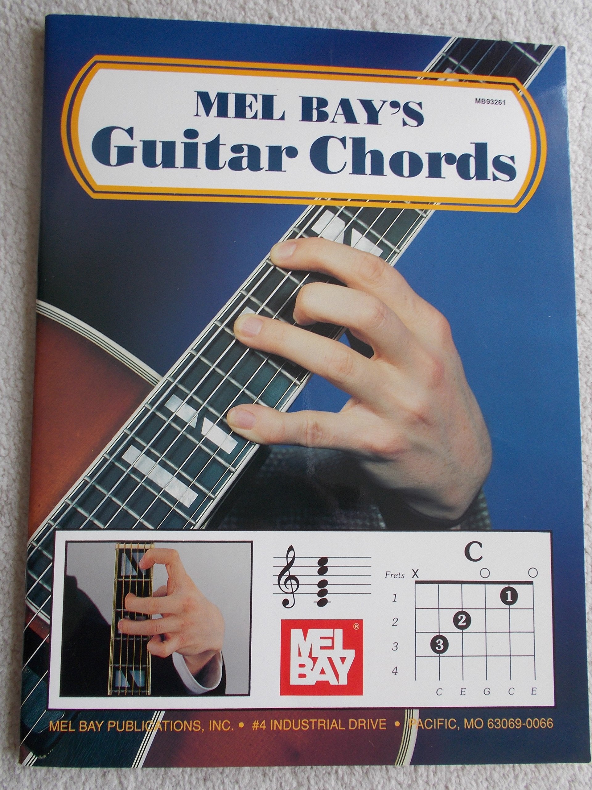This book is considered to be the largest selling basic guitar chord book ever published! Twelve basic guitar chord types are shown in three ways: photograph, notation, and chord diagram. In addition, a special bonus section is contained showing in photo and diagram the essential moveable rhythm guitar chord forms. This special section contains the basics of Mel Bay's acclaimed Rhythm Chord Playing System showing the guitarist how to finger numerous advanced chord forms with a minimum of hand movement! Chords shown in photo, notation, and diagram form include Major, Minor, Dominant Seventh, Diminished, Augmented, Ninth, Major Seventh, Minor Seventh, Seventh #5, Seventh b5, Sixth and Minor Sixth. Chords are chown in the bonus Moveable Rhythm Chord section include Major, Minor, 7th, Minor 7th, 7sus4, 7b5, 7#5, Minor 7b5, Sixth, Minor 6th, Diminished 7th, Diminished add 9, 9th, Minor 9th, 9b5, 9#5, Minor 9b5, 7th b9, 7th b9#5, 11th, 9 add 6, Minor 9 add 6, 13th, 13sus11, 13 b9, 13th b9 b5.