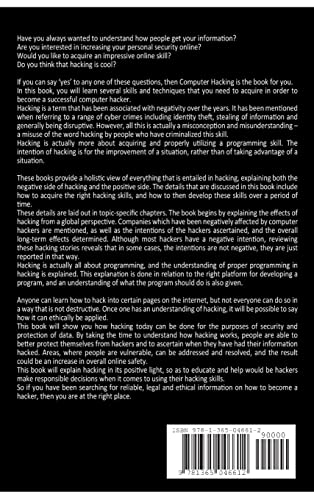 In this book, you will learn several skills and techniques that you need to acquire in order to become a successful computer hacker. Hacking is a term that has been associated with negativity over the years. It has been mentioned when referring to a range of cyber crimes including identity theft, stealing of information and generally being disruptive. However, all this is actually a misconception and misunderstanding a misuse of the word hacking by people who have criminalized this skill. Hacking is actually more about acquiring and properly utilizing a programming skill. The intention of hacking is for the improvement of a situation, rather than of taking advantage of a situation.