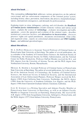 This work addresses perspectives on the judicial, correctional and law enforcement components of the criminal justice system, including history, ethics, prevention, intervention, due process, marginalized populations, international consequences and demands for professionalism. It also examines critical variations in the criminal justice systems of countries worldwide.