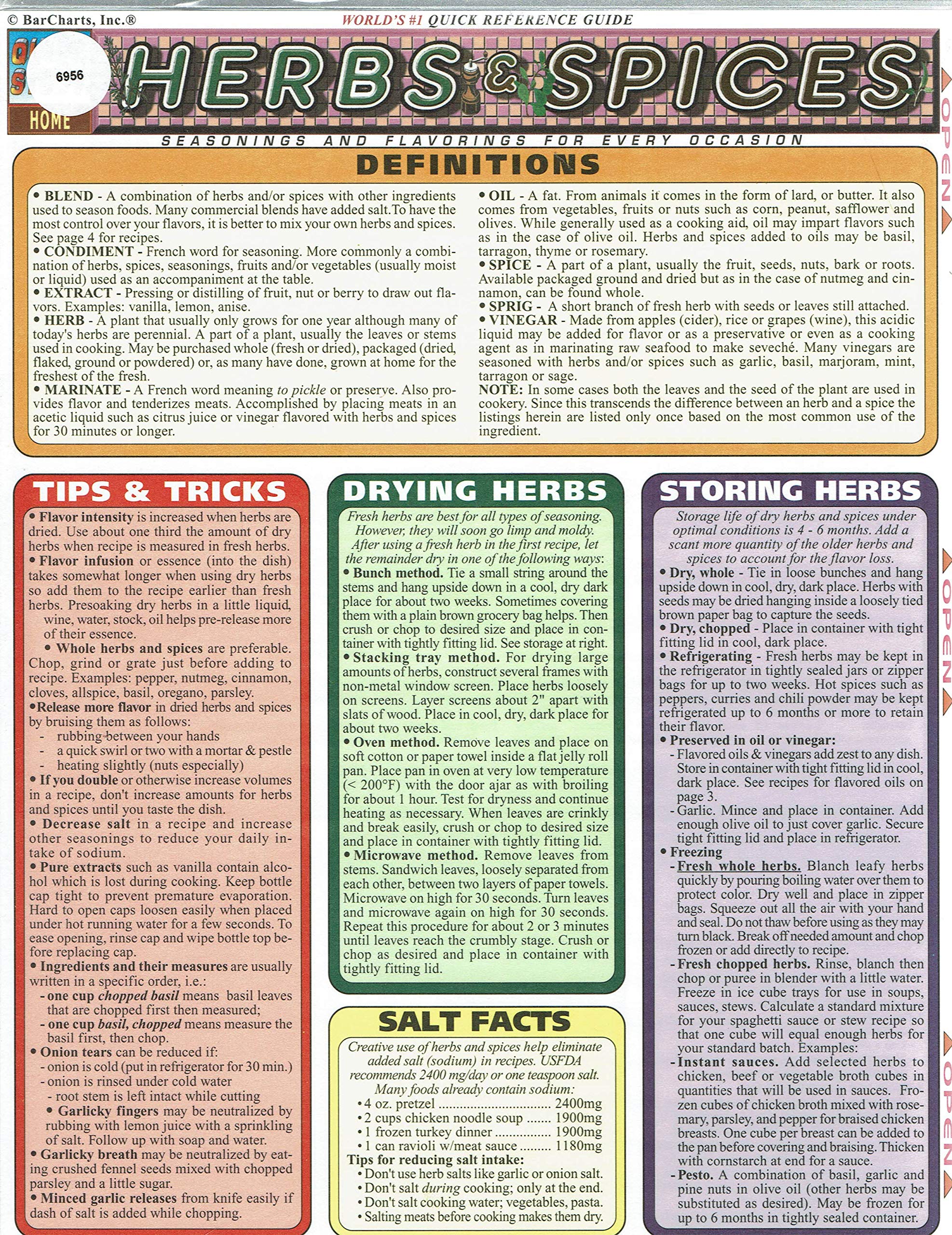 Don't know salt from salsa? With this chart you will. Can't tell a pepper from a pimiento? With this chart you can. Think your life is lacking spice? Maybe you just don't know which spice to add. With this chart you will. Can't tell an herb from a spice? That's what this chart's all about. For every 'spicy' girl and guy, this chart is the saffron on the salad.