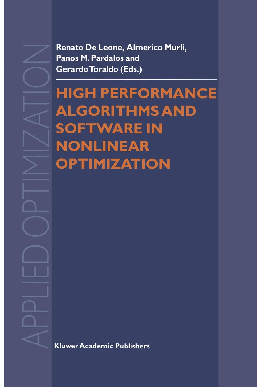 This book contains a selection of papers presented at the conference on High Performance Software for Nonlinear Optimization (HPSN097) which was held in Ischia, Italy, in June 1997. The rapid progress of computer technologies, including new parallel architec tures, has stimulated a large amount of research devoted to building software environments and defining algorithms able to fully exploit this new computa tional power. In some sense, numerical analysis has to conform itself to the new tools. The impact of parallel computing in nonlinear optimization, which had a slow start at the beginning, seems now to increase at a fast rate, and it is reasonable to expect an even greater acceleration in the future. As with the first HPSNO conference, the goal of the HPSN097 conference was to supply a broad overview of the more recent developments and trends in nonlinear optimization, emphasizing the algorithmic and high performance software aspects. Bringing together new computational methodologies with theoretical ad vances and new computer technologies is an exciting challenge that involves all scientists willing to develop high performance numerical software. This book contains several important contributions from different and com plementary standpoints. Obviously, the articles in the book do not cover all the areas of the conference topic or all the most recent developments, because of the large number of new theoretical and computational ideas of the last few years.