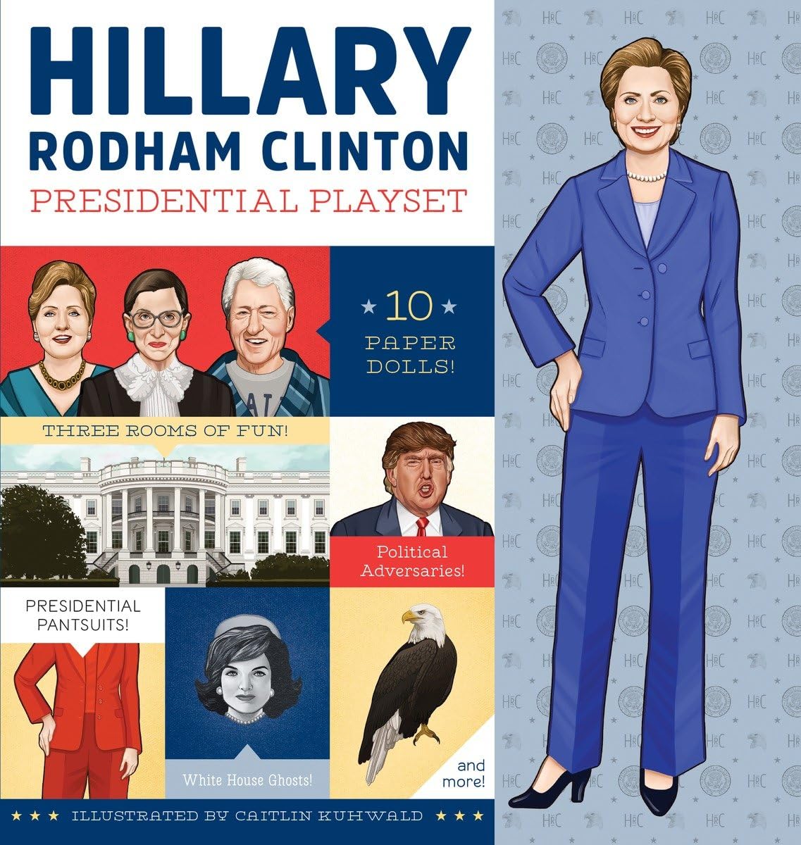 Still with her? Put Madam President in the White House where she belongs!This Presidential Playset includes: 10 perforated paper dolls, 3 rooms of fun, Republican adversaries, Supreme Court Justices, pantsuits and pajamas, Secret Service protection, White House ghosts, and much, much more!This foldout book features replicas of the Oval Office and other White House locations, plus perforated paper dolls of Hillary Clinton and all of her political pals and adversaries. With the Presidential Playset, you can draft executive orders in the Oval Office, deliver stirring speeches on the White House lawn, and take decisive action in the Situation Room. Turn the pages to pick the perfect outfit and add your favorite fashion accessories. Mix and mingle with distinguished guests, blow Bill a kiss while he putters about the lawn, and tangle with all kinds of Republican adversaries. Oh, and be on the lookout for those pesky White House ghosts!