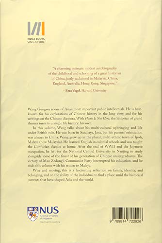As someone who has studied history for much of my life, I have found the past fascinating. But it has always been some grand and even intimidating universe that I wanted to unpick and explain to myself.Wang Gungwu is one of Asias most important public intellectuals. He is bestknown for his explorations of Chinese history in the long view, and for his writings on the Chinese diaspora. With Home is Not Here, the historian of grand themes turns to a single life history: his own.Wang writes about his multicultural upbringing and life under British rule. He was born in Surabaya, Java, but his parents orientation was always to China. Wang grew up in the plural, multiethnic town of Ipoh, Malaya (now Malaysia). He learned English in colonial schools and was taught the Confucian classics at home. After the end of WWII and Japanese occupation, he left for the National Central University in Nanjing to study alongside some of the finest of his generation of Chinese undergraduates. The victory of Mao Zedongs Communist Party interrupted his education, and he ends this volume with his return to Malaya.Wise and moving, this is a fascinating reflection on family, identity, and belonging, and on the ability of the individual to find a place amid the historical currents that have shaped Asia and the world.