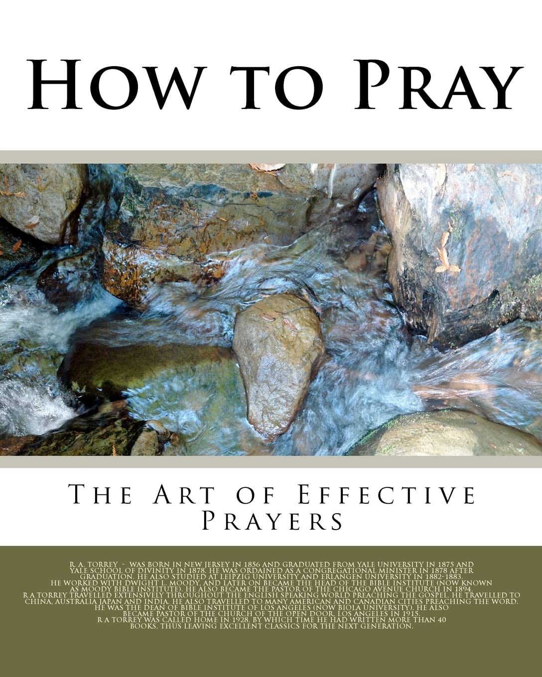 How to Pray is a Christian Classic by R A Torrey which he wrote around 1900 explaining the principle of prayers to help Christian in their prayer life. The book is still relevant for our times as it takes us through various types of prayers and the benefits of effective prayer. He also identifies the various hindrances to our prayers, but offers guidance as to how to overcome these hindrances. This book will continue to assist Christians in their prayer life for a long time.