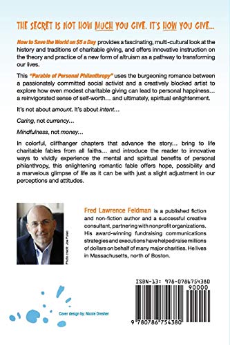 How to Save the World on $5 a Day provides a fascinating, multicultural look at the history and traditions of charitable giving, and offers innovative instruction on the theory and practice of a new form of altruism dubbed personal philanthropy all in the form of an inspirational novelette.Designed to be read in a single sitting, this "Parable of Personal Philanthropy" uses the unexpected meeting and burgeoning romance between a passionately committed social activist named Annette and a creatively blocked artist named John to explore how even modest charitable giving can lead to personal happiness...a reinvigorated sense of selfworth... and ultimately, spiritual enlightenment.The secret is not how much you give; it's how you give...It's not about amount. It's about intent...Caring not currency...Mindfulness not money...In colorful, cliffhanger chapters that advance the story of Annette and John...bring to life charitable fables from Catholicism, Judaism, Islam and Buddhism...and introduce the reader to innovative ways to vividly experience the mental and spiritual benefits of personal philanthropy, this book offers a marvelous glimpse of life as it can be with just a slight adjustment in our perceptions and attitudes.It sends a timely and important message of hope and possibility to a worldwide audience that yearns for diverse and creative approaches on how to experience personal enlightenmentand...How to Save the World on $5 a Day.