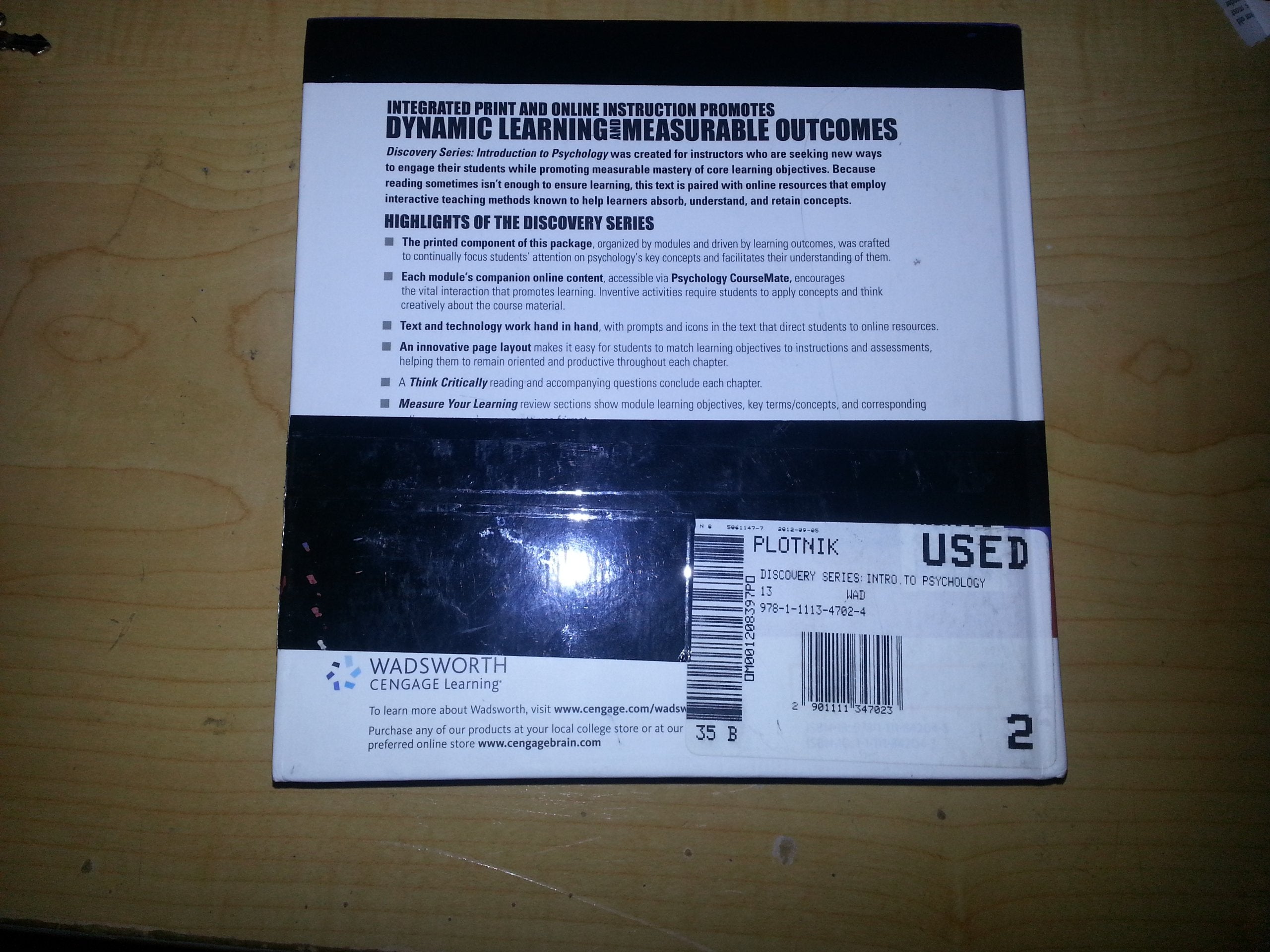 The Cengage Learning DISCOVERY SERIES: INTRODUCTION TO PSYCHOLOGY is designed to deliver traditional course content in an innovative 'hybrid' learning formatinstruction presented in a printed book paired with integrated online applications and assessments. The program promotes measurable mastery of core course learning objectives by guiding students' active engagement with content delivered through the book, images, video, simulations, and assessments. This contemporary approach to learning seamlessly integrates text and technology, enabling students to easily move from the book's instruction to its online applications for a deeper, lasting understanding of the core psychological concepts, and for assessments that reliably track students' progress and performance.