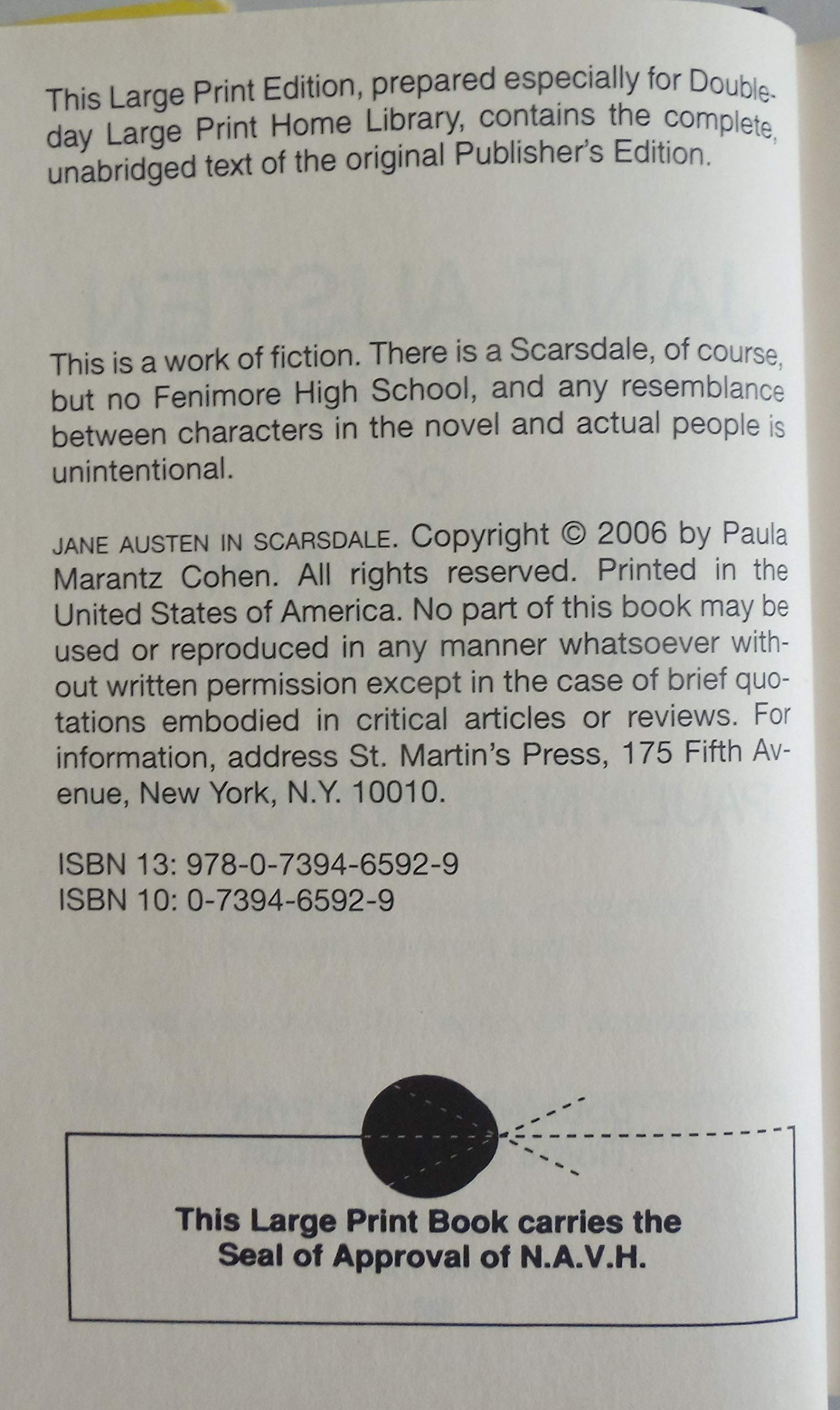Anne Ehrlich is a dedicated guidance counselor steering her highschool charges through the perils of college admission. Thirteen years ago, when she was graduating from Columbia University, her wealthy familyespecially her dear grandmother Winniepersuaded her to give up the love of her life, Ben Cutler, a penniless boy from Queens College. Anne has never married and hasn't seen Ben sinceuntil his nephew turns up in her high school and starts applying to college.Now Ben is a successful writer, a world traveler, and a soontobe married man; and Winnie's health is beginning to fail. All of these changes have Anne beginning to wonderCan old love be rekindled, or are past mistakes too painful to forget?With all the wit and perceptiveness of Jane Austen's Persuasion , Jane Austen in Scarsdale is a fresh and romantic new comedy from a novelist with "a knack for making modern life reflect literature in the most engaging manner" (Library Journal).
