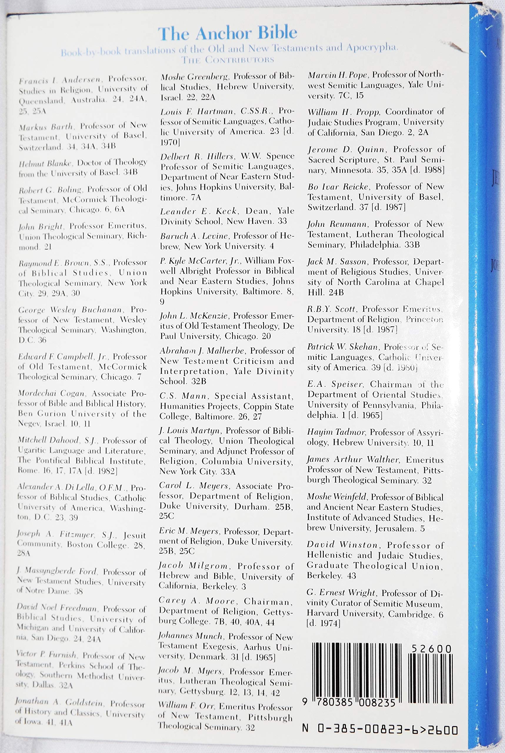 Jeremiah (Volume 21 In The Acclaimed Anchor Bible), Like Most Of The Prophetic Books, Is An Anthology Containing A Wide Variety Of Literary Forms. This Remarkable Diversity Gives The Work A Special Appeal For Students Of Literature, Who Find Here Striking Parallels To Later Writings; For Example, In The 'Confessions' One Hears A Voice Not Unlike John Donnes In The Holy Sonnets, And In The War Poetry, One Is Reminded Of Pieces Written Two And A Half Millennia After Jeremiah, The War Poems Of Stephen Crane.The Life Of Jeremiah (C. 627580 B.C.) Spanned A Particularly Crucial Period In The History Of Judah, The Southern Kingdom. Except For A Brief Period Of Independence (Under Josiah) She Was Under Successive Vassalages To Assyria, Egypt, And Babylonia. In His Introduction, John Bright Elucidates The Historical Background Of The Events Described In Jeremiah And Clarifies The Importance Of Jeremiahs Role To The History Of Israel.The Book Of Jeremiah Poses Extraordinary Difficulties For The Translator. In Addition To Coping With The Usualand Formidableproblem Of Converting The Classical Hebrew Into Modern English, The Author Had Also To Capture The Different Stylistic Techniques Used In The Original. This John Bright Has Succeeded Admirably In Doing, And The Result Is A Translation Notable Not Only For Its Accuracy Of Phrase, But Also For Its Fidelity To Style. This Volume Thereby Accomplishes One Of The Major Aims Of The Anchor Bible: To Rediscover The Original, To Know Its Importance, And To Feel Its Impact As Immediately As Those Who First Read, Or Heard, Its Story.