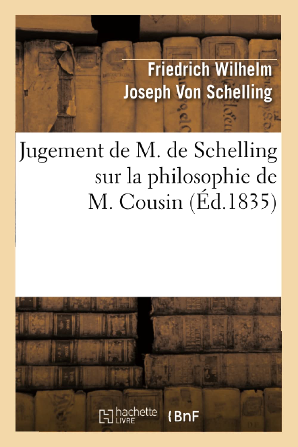 Jugement de M. de Schelling sur la philosophie de M. Cousin / trad. de l'allemand, et prcd d'un Essai sur la nationalit des philosophies, par J. WillmDate de l'dition originale: 1835Comprend: Essai sur la nationalit des philosophiesLe prsent ouvrage s'inscrit dans une politique de conservation patrimoniale des ouvrages de la littrature Franaise mise en place avec la BNF.HACHETTE LIVRE et la BNF proposent ainsi un catalogue de titres indisponibles, la BNF ayant numris ces oeuvres et HACHETTE LIVRE les imprimant la demande.Certains de ces ouvrages refltent des courants de pense caractristiques de leur poque, mais qui seraient aujourd'hui jugs condamnables.Ils n'en appartiennent pas moins l'histoire des ides en France et sont susceptibles de prsenter un intrt scientifique ou historique.Le sens de notre dmarche ditoriale consiste ainsi permettre l'accs ces oeuvres sans pour autant que nous en cautionnions en aucune faon le contenu.Pour plus d'informations, rendezvous sur www.hachettebnf.fr