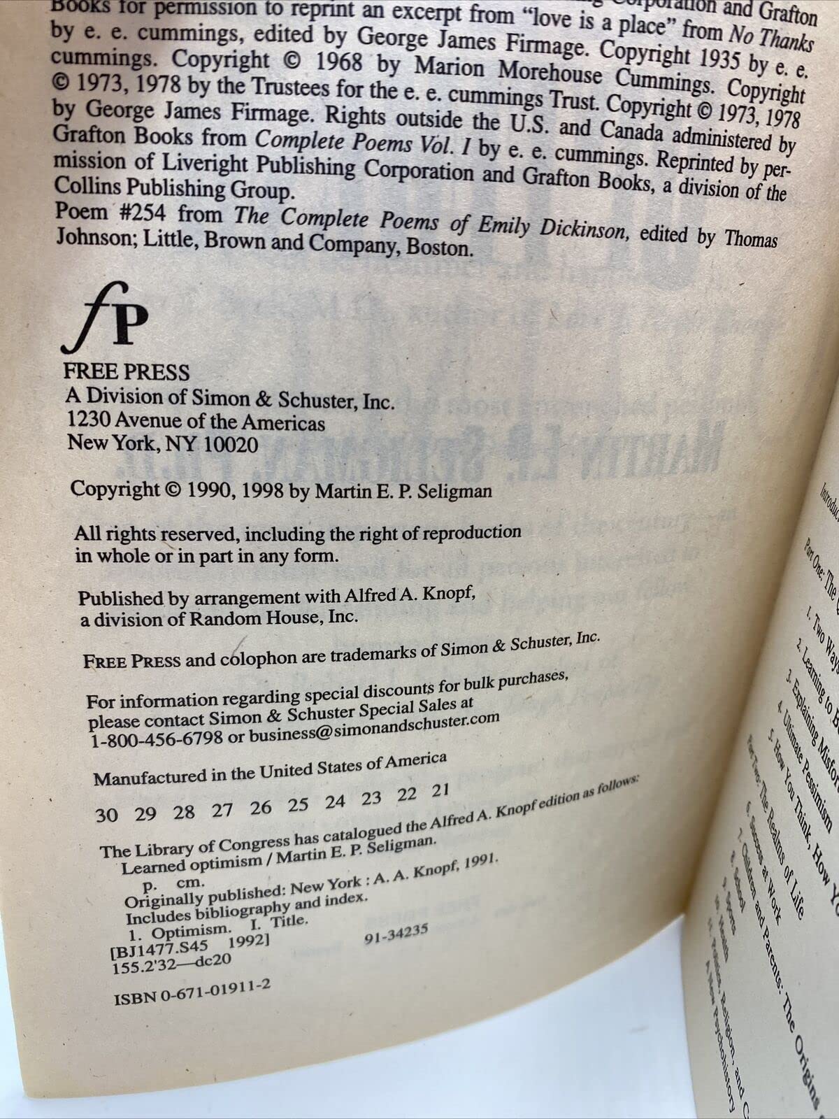 You Can Significantly Improve Your Life Starting Today With The Power Oflearned Optimismin This Groundbreaking National Bestseller, Martin E.P. Seligman Shows You How To Chart A New Approach To Living With 'Flexible Optimism.' Drawing From More Than Twenty Years Of Clinical Research, Dr. Seligman Outlines Easytofollow Techniques That Have Helped Thousands Of People Rise Above Pessimism And The Depression That Accompanies Negative Thoughts And Build A Life Of Rewards And Lasting Happiness. Learned Optimism Shows You How To: Recognize Your 'Explanatory Style' What To Say To Yourself When You Experience Setbacks And How It Influences Your Life Boost Your Mood And Your Immune System With Healthful Thoughts Help Your Children To Practice The Thought Patterns That Encourage Optimism Break The 'Igiveup' Habit With Dr. Seligman'S Abc Techniques Change Your Interior Dialogue And Experience The Astonishing Positive Results