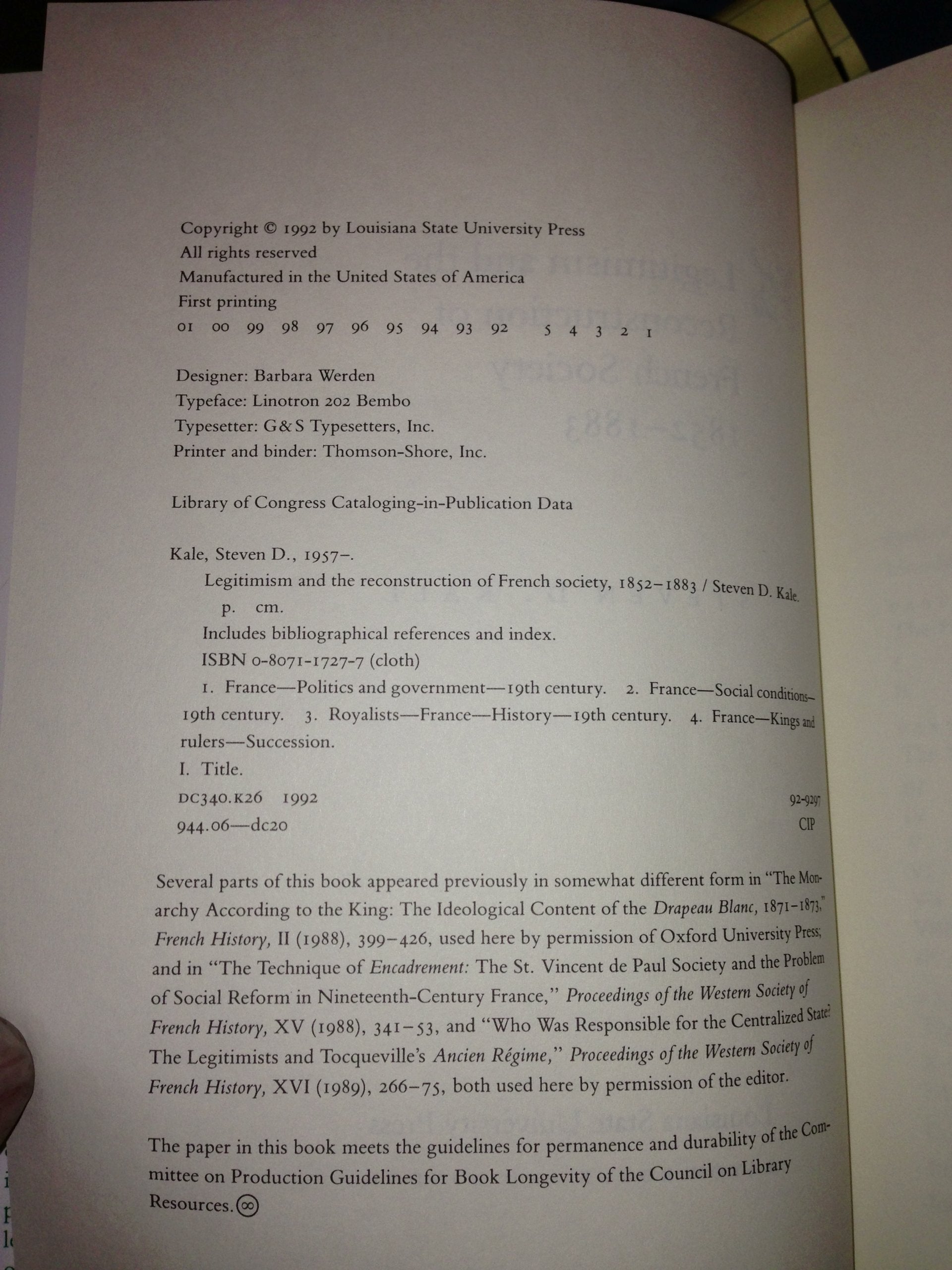 Legitimists wanted France to accept the return of the Bourbon monarchs. Kale's study rescues the movement from historical obscurity to explore its dimensions in 19thcentury French social, cultural, and political life and to study its importance in understanding the mentality of those on the Left who founded the Third Republic. Annotation copyright Book News, Inc. Portland, Or.
