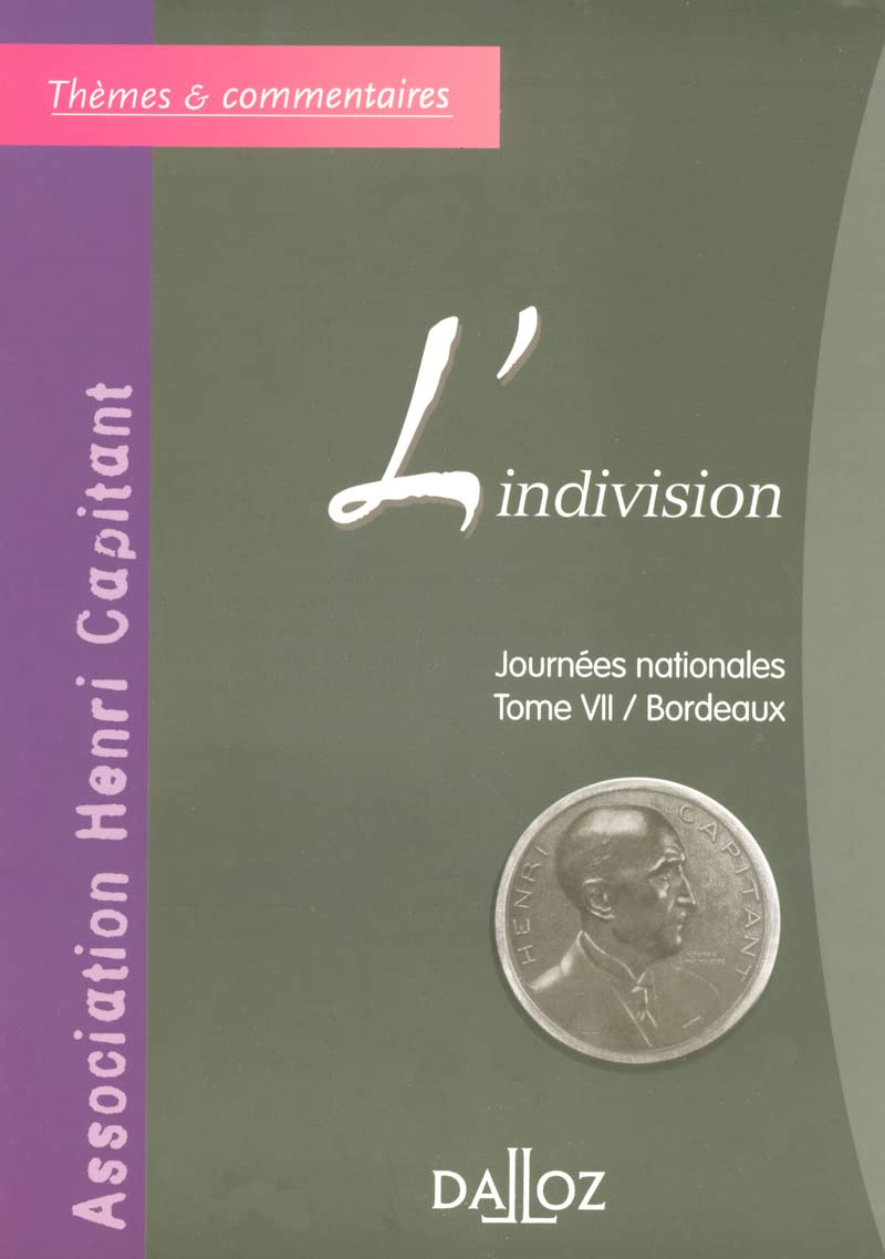 L'Association Henri Capitant des Amis de la Culture Juridique Franaise a organis, Bordeaux, un colloque consacr " l'indivision ". Tous les aspects juridiques et fiscaux de l'indivision sont traits. Ainsi, la dimension familiale de l'indivision, le rle du juge, la mise enoeuvre d'une procdure collective, et ses aspects fiscaux et comptables ont t envisags.
