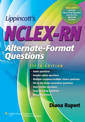 This newly expanded 5th edition of Lippincott's AlternateFormat Questions has everything you need to be fully prepared to answer every type of question you will encounter on the NCLEX. More than 350 questions include multiple reponse questions, draganddrop questions, hotspot questions, audio questions, chart questions, graphic option questions, and fillinthe blank questions. Also includes a comprehensive test with an additional 150 questions. The rationale are clear and detailed and cover correct as well as incorrect answers. In this new edition, the testtaking strategies are expanded, to help you dissect each question to its core components and provide keys to choosing the right answer. Covers all the topics covered on the exam.