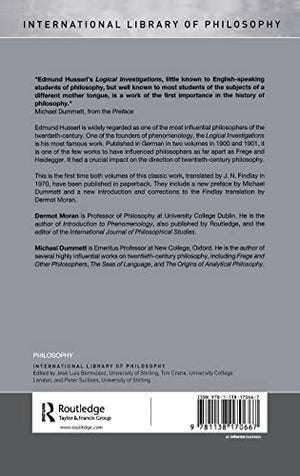 Edmund Husserl is the founder of phenomenology and the Logical Investigations is his most famous work. It had a decisive impact on twentieth century philosophy and is one of few works to have influenced both continental and analytic philosophy.This is the first time both volumes have been available in paperback. They include a new introduction by Dermot Moran, placing the Investigations in historical context and bringing out their contemporary philosophical importance.These editions include a new preface by Sir Michael Dummett.