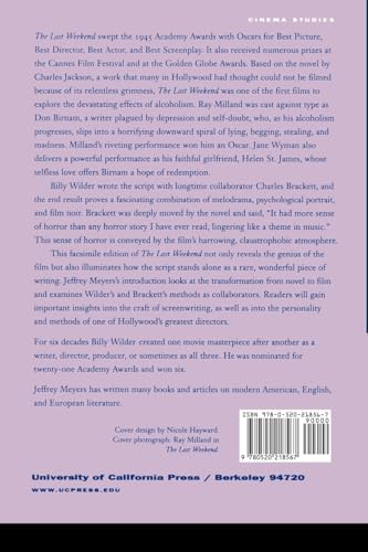 The Lost Weekend swept the 1945 Academy Awards, with nominations for Best Film Editing, Score, and Black and White Cinematography, and Oscars for Best Picture, Director, Actor, and Screenplay. It also received numerous awards at the Cannes Film Festival and the Golden Globes. Based on the novel by Charles Jackson, a work that many in Hollywood had thought unfilmmable because of its relentless grimness, The Lost Weekend was one of the first films to explore the devastating effects of alcoholism. Ray Milland was cast against type as Don Birnam, a writer plagued by depression and selfdoubt who, as his alcoholism progresses, slips into a horrifying downward spiral of lying, begging, stealing, and madness. Milland's riveting performance won him an Oscar. Jane Wyman also delivers a powerful performance as his faithful girlfriend, Helen St. James, whose selfless love offers Birnam a hope of redemption.This facsimile edition of The Lost Weekend not only reveals the genius of the film but also illuminates how the script stands alone as a rare, wonderful piece of writing. Jeffrey Meyers's introduction looks at the transformation from novel to film and examines Wilder and coauthor Charles Brackett's methods as collaborators. Readers will gain important insights into the craft of screenwriting, and the personality and methods of one of Hollywood's greatest directors.