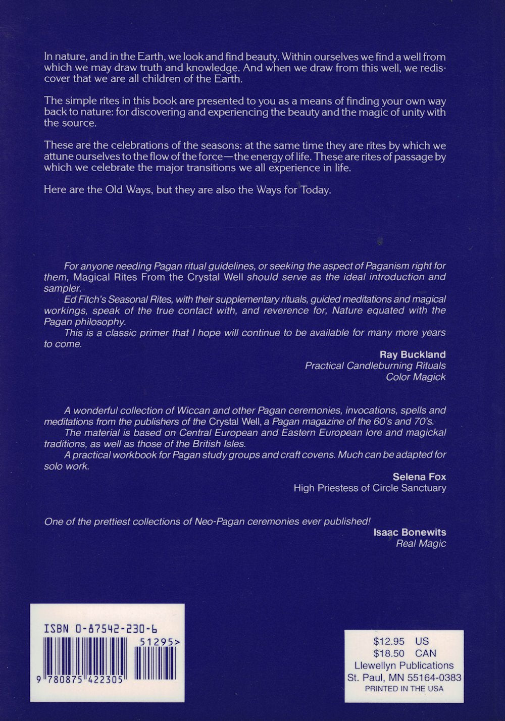 Now you can get the collection of rituals and wisdom that has helped start thousands of people on a Pagan path for over thirtyfive yearsMagical Rites from the Crystal Well by Ed Fitch.'The Crystal Well' was a small magazine that was published at a time when little information was available on Wicca, Witchcraft, and Paganism. Because of this, the rituals from that magazine circulated far and wide. Today, decades later, they are still popular. Why? Because they're some of the most beautiful, magical, and lyrical rituals ever written.These wonderful rituals have been collected in a beautifully illustrated book. Among the many rituals and techniques you'll find in Magical Rites from the Crystal Well are: Rites for all of the seasons, including Midsummer, Lammas, Winter, and more. The Rite of Calling Down the Moon The Ceremony of Cakes and Wine The Feast of the Full Moon Storm Magic Magical Dance Building an Astral Temple Pathworking A Handfasting Rite Rite of Dedication and Protection for an InfantEach rite includes complete instructions, with every word and every action clearly explained. The book also includes Pagan lore, such as the Rede of Chivalry, tips on forming a Pagan training group, how to tell if your pet is also your familiar, and much more.Almost every page has an elegant illustration. This book is not just filled with important ideas and rites that you can use, it's also beautiful to behold.