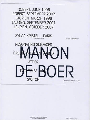 This is the first extensive monograph on the work of Dutch artist Manon de Boer, published on the occasion of her first survey exhibition at Frankfurter Kunstverein and her solo show at Witte de With, Rotterdam. De Boer's filmic portraits sculpt a unique notion of time, meditating on the intersections of personal memory and cultural history.