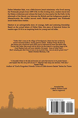 Recipient of the Catholic Writers Guild Seal of Approval! Father Sebastian Rale was a littleknown Jesuit missionary who lived among the Abenaki people from 16891724. In this riveting story, readers travel into the Maine wilderness and witness the heart of a true martyr for the Faith. Martyrs is an unforgettable story of courage, faith, and enduring friendship. Based on the actual letters of Father Rale, this book will inspire young and old alike. Historical fiction for ages 1014.