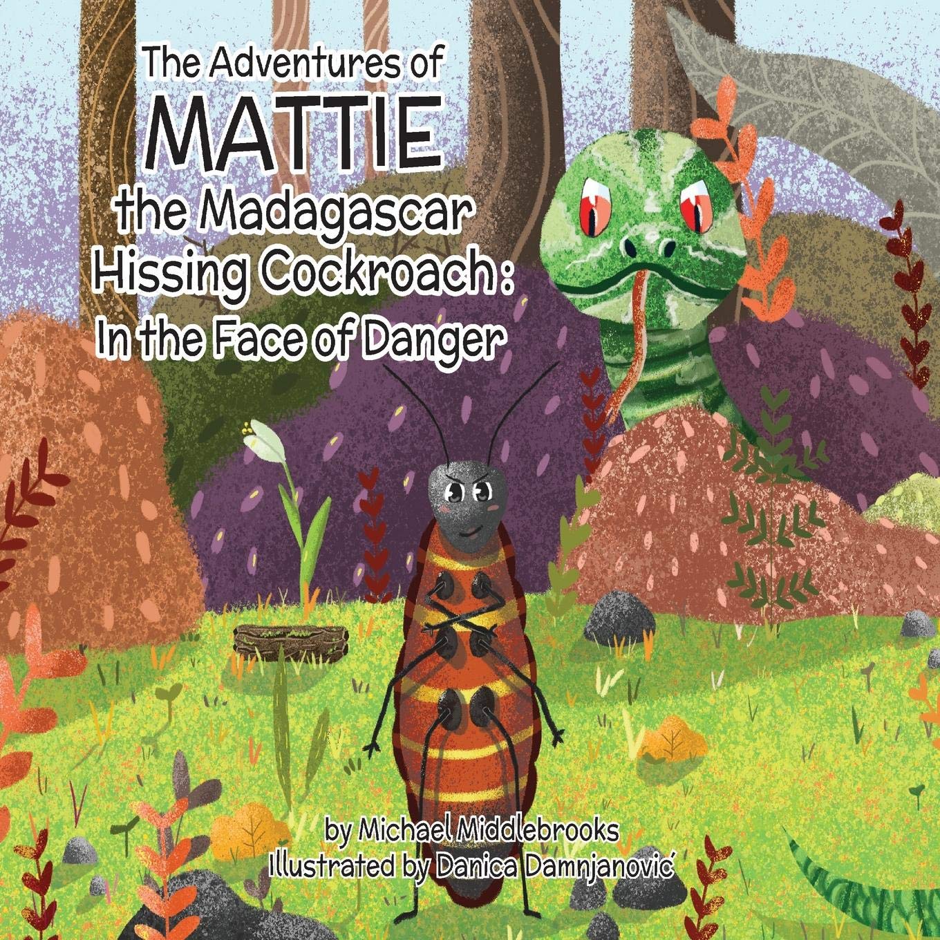 In the Face of Danger Mattie is no ordinary cockroach: she is descended from the proud line of Madagascar Hissing Cockroaches. Through her father's belief in Mattie, she will be tested as no other Madagascar Hissing Cockroach has ever been tested.Will Mattie simply hop away like Bucky and Brucey the bullfrogs do, when threatened, or hide in the mud like Wallace the worm does when scared or threatened?Mattie's family of 1000 Madagascar Hissers are relying on her to be brave when a green, slithery snake approaches their decaying log which they call home. Will Mattie be brave when she is terrified and scared, in the face of danger?
