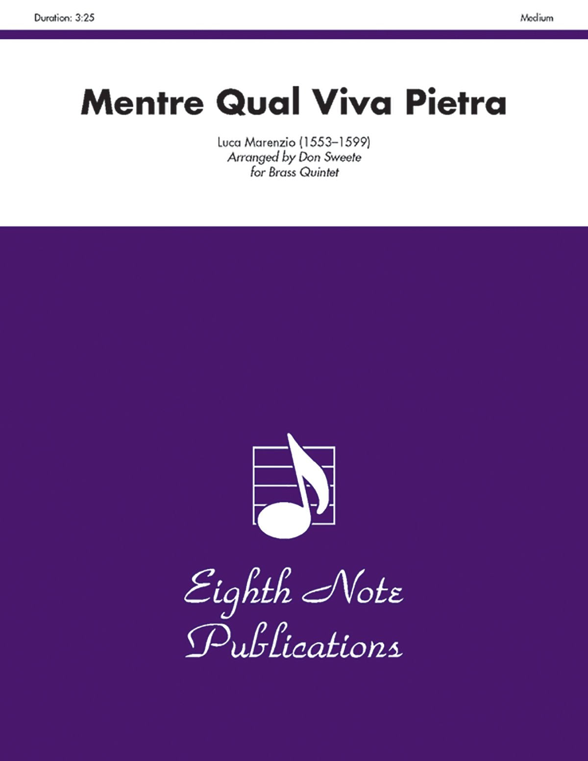 Luca Marenzio was best known for his writing of madrigals and this is a fine example of Marenzio's choral writing. This transcription for brass quintet places relatively few technical demands on the players, so it is a fine opportunity for younger musicians to develop the techniques of expressive playing. It is scored for 2 trumpets, horn, trombone 1 (alternate horn 2) and trombone 2. The part for trombone 2 is also suitable for baritone.