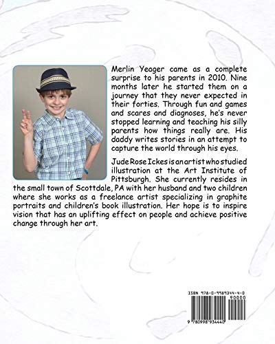A little boy with Autism discovers the world and his imagination. When everyday events get a little magic twist, they become fantasic adventures that show him more than he ever imagined possible. This first installment features amazing illustrations and a story that's sure to captivate while teaching children about stars and constellations.Provided you're here seeking Autismfriendly reading books, you'll love this children's picture book and you and your child will connect on a deeper level as you unterake the journey with Merlin Yeager, a child with Autism who came as a complete surprise to his parents in 2010. Nine months later he started them on a journey that they never expected in their forties. Through fun and games and scares and diagnoses, he's never stopped learning and teaching his silly parents how things really are. His daddy writes stories in an attempt to capture the world through his eyes.Jude Rose Ickes was picked as the artist and illustrator for this story within our series of upcoming Autistmfriendly reading books. Jude studied illustration at the Art Institute of Pittsburgh. She currently resides in the small town of Scottdale, PA with her husband and two children where she works as a freelance artist specializing in graphite portraits and children's book illustration. Her hope is to inspire vision that has an uplifting effect on people and achieve positive change through her art