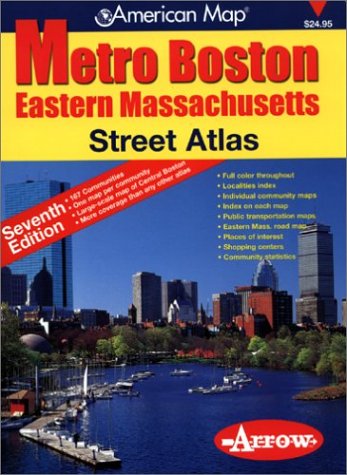 Street Atlas of Metro Boston & Eastern Massachusetts. 7th Edition. 167 communities. One map per community. Largescale map of Central Boston. Full color throughout. Localities index. Public transportation maps. Eastern MA road map. Places of interest. Shopping centers. Community statistics.