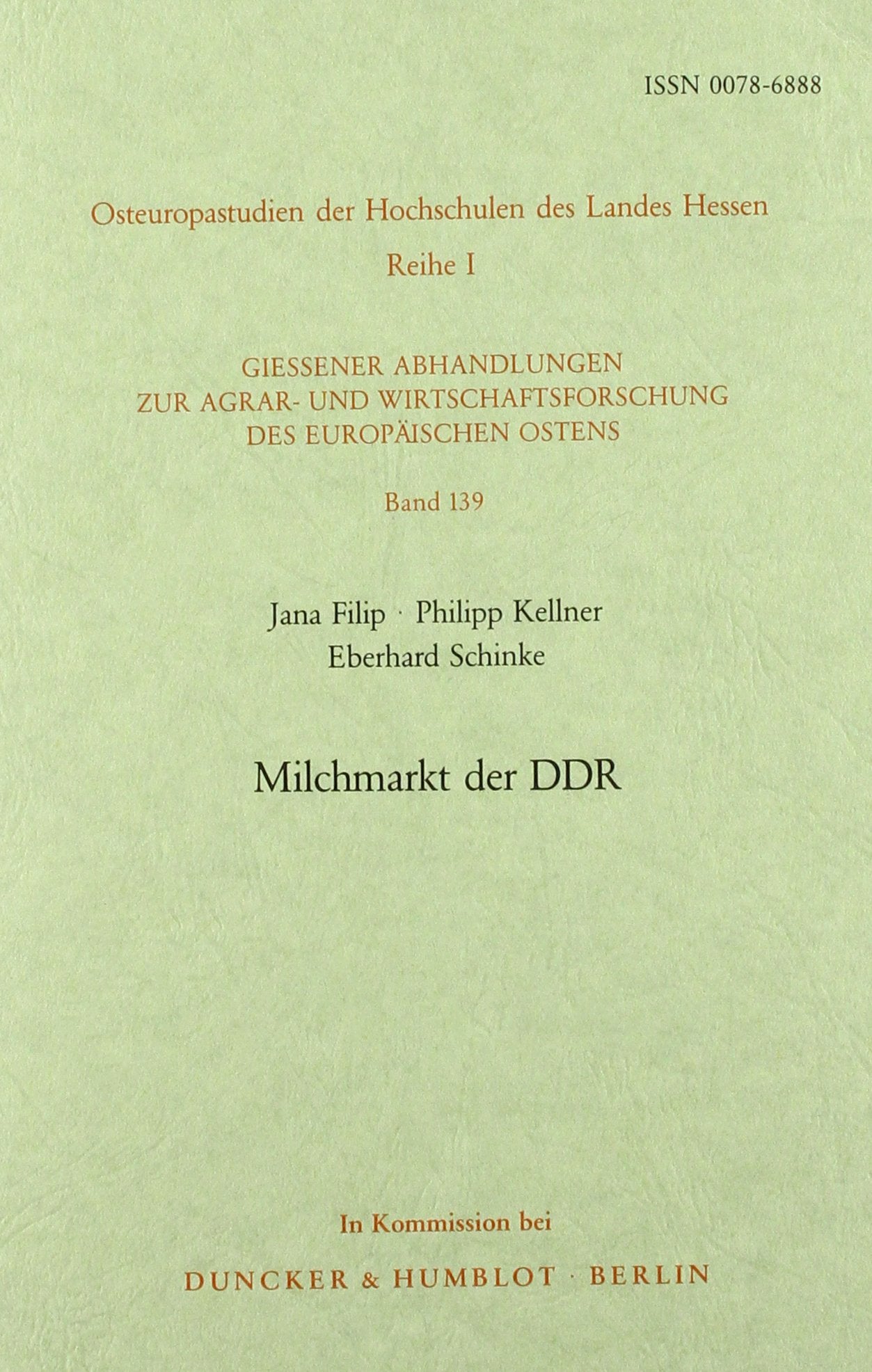 "Herausgegeben von der Kommission fur Erforschung der Agrar und Wirtschaftsverhaltnisse des europaischen Ostens e.V. ..."T.p. verso.