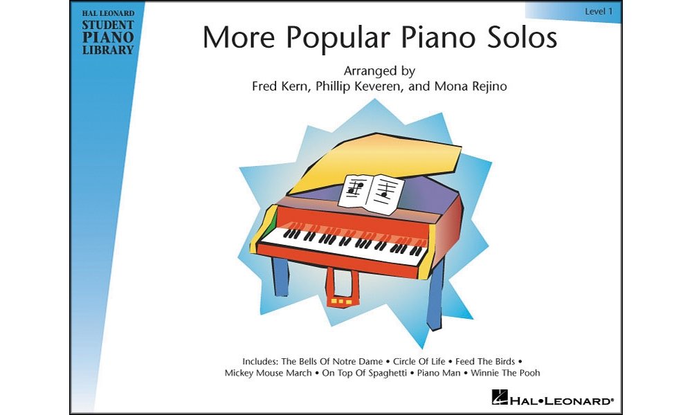 (Educational Piano Library). Featuring top hits for the younger student, this pop songbook is perfect for beginning piano students. Correlates directly to Piano Lessons Book 1. The horizontalformat book and large staff notation make the songs easy to read and learn. Each song includes an optional teacher accompaniment. Fully orchestrated CD and GM accompaniment disks are available separately. The CDs have a practice and a performance track for each song. 7 songs with teacher accompaniments: The Bells of Notre Dame * 'C' Is for Cookie * Circle of Life * Feed the Birds * Mickey Mouse March * On Top of Spaghetti * Winnie the Pooh. Notation includes quarter through whole notes/rests; 3/4, 4/4 meter; basic dynamics from p f , D.C. al Fine; movements by steps and skips only; single line melodies. Reading range: from Bass Clef E a 6th below Middle C, to Treble Clef A a 6th above Middle C; keyboard guides show hand placement.