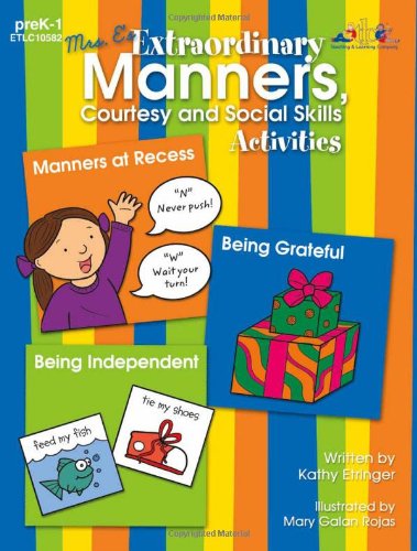 It s never too early to teach children manners, courtesy and social skills. From knowing when to say please and thank you at home, in school or in public places, to covering their nose when sneezing, there is a multitude of good manners to teach children at an early age. These engaging handson activities are a great way to introduce students to skills they will use for the rest of their lives. A popular children's book title is included with each activity to enhance the lesson. Topics include being grateful, complimenting others, coughing and sneezing, good sportsmanship, having a good attitude, lining up, listening, please and thank you, table manners, tolerance and understanding, and many more.