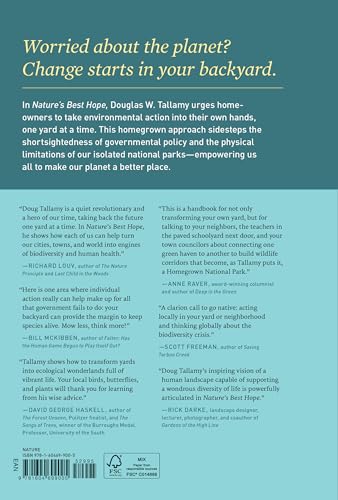 - Q: Does the book offer specific examples for planting? A: Yes, Nature's Best Hope includes specific suggestions and examples for homeowners to incorporate native plants into their yards.