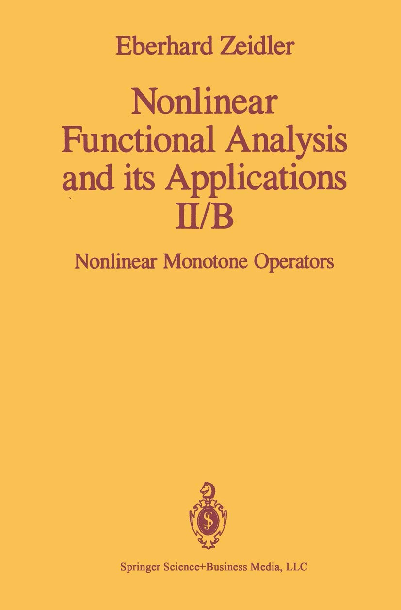 This is the second of a fivevolume exposition of the main principles of nonlinear functional analysis and its applications to the natural sciences, economics, and numerical analysis. The presentation is self contained and accessible to the nonspecialist. Part II concerns the theory of monotone operators. It is divided into two subvolumes, II/A and II/B, which form a unit. The present Part II/A is devoted to linear monotone operators. It serves as an elementary introduction to the modern functional analytic treatment of variational problems, integral equations, and partial differential equations of elliptic, parabolic and hyperbolic type. This book also represents an introduction to numerical functional analysis with applications to the Ritz method along with the method of finite elements, the Galerkin methods, and the difference method. Many exercises complement the text. The theory of monotone operators is closely related to Hilbert's rigorous justification of the Dirichlet principle, and to the 19th and 20th problems of Hilbert which he formulated in his famous Paris lecture in 1900, and which strongly influenced the development of analysis in the twentieth century.