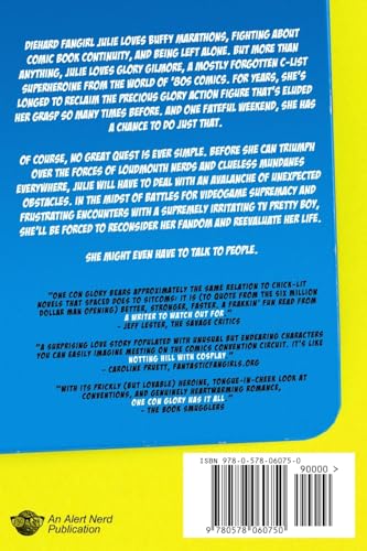 Diehard fangirl Julie loves Buffy marathons, fighting about comic book continuity, and being left alone. But more than anything, Julie loves Glory Gilmore, a mostlyforgotten CList superheroine from the world of '80s comics. For years, she's longed to reclaim the precious Glory action figure that's eluded her grasp so many times before. And one fateful weekend, she has the chance to do just that. Of course, no great quest is ever simple. Before she can triumph over the forces of loudmouth nerds and clueless Mundanes everywhere, Julie will have to deal with an avalanche of unexpected obstacles. In the midst of battles for videogame supremacy and frustrating encounters with a supremely irritating TV pretty boy, she'll be forced to reconsider her fandom and reevaluate her life. She might even have to talk to people.