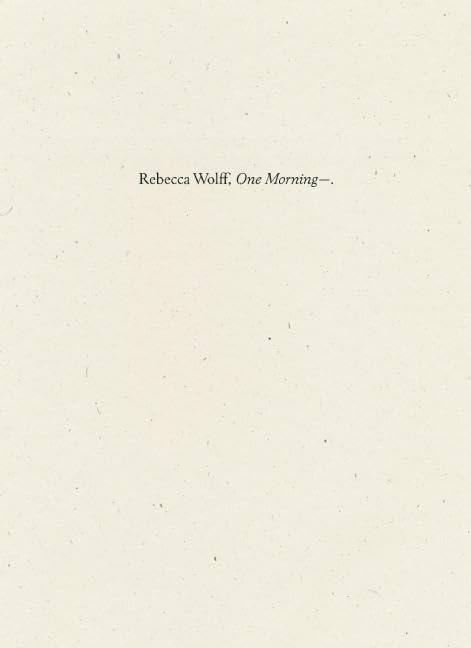 "[Wolff's poems] are stylistic and tonal shapeshifters. Hip, contemplative, and dark and resistant to the hunkydory, the New Agey, and the prescriptive, they're unnerving, funny, and occasionally subversive."BookforumPoet, novelist, and Fence Books founder Rebecca Wolff's internal monologue made external in poetry is uncanny. Her musical and darkly funny fourth collection, One Morning, spans language, culture, art history, love, passion, grief, consumerism, environmental devastation, and the ekphrastic experience of pop and high culture. She experiments with torque, energy, narrativetwo steps ahead of herself with the reader on her heels.From "Today Is a Good Day to Fly (Life Begins at)":I'm really digging this blue skyafter so much rainwith my regular menstrualcyclemy Def Jamprogesterone creamthe blowin (in my pocket)(ripped out)from inflight music magazine"touching cloth"like the Romantics do.Insert jitney.Rebecca Wolff is the author of four collections of poetry, one novel, and numerous pieces of occasional prose. Her first book, Manderley, was selected for the National Poetry Series by Robert Pinsky. Her second, Figment, was selected for the Barnard Women Poets Prize by Claudia Rankine and Eavan Boland. Her third, The King, was published by W. W. Norton in 2009. Her novel The Beginners was published by Riverhead in 2011. She is a graduate of the Iowa Writers Workshop and has been a fellow at the MacDowell Colony and the Millay Colony for the Arts. In 1998, Wolff founded the influential literary journal Fence; in 2001 she founded Fence Books and launched The Constant Critic website. Wolff lives in Hudson, New York, and is currently a fellow at the New York State Writers Institute at the University at Albany.