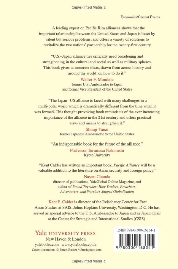Despite the enduring importance of the U.S.Japan security alliance, the broader relationship between the two countries is today beset by sobering new difficulties. In this comprehensive comparative analysis of the transpacific alliance and its political, economic, and social foundations, Kent E. Calder, a leading Japan specialist, asserts that bilateral relations between the two countries are dangerously eroding as both seek broader options in a globally oriented world.Calder documents the quiet erosion of Americas multidimensional ties with Japan as China rises, generations change, and new forces arise in both American and Japanese politics. He then assesses consequences for a twentyfirstcentury military alliance with formidable coordination requirements, explores alternative foreign paradigms for dealing with the United States, adopted by Britain, Germany, and China, and offers prescriptions for restoring U.S.Japan relations to vitality once again.