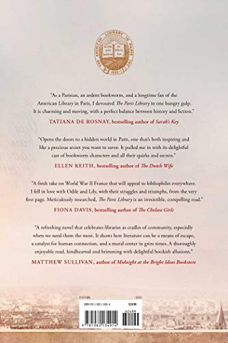 Based on the true World War II story of the American Library in Paris, an unforgettable novel about the power of books and the bonds of friendshipand the ordinary heroes who can be found in the most perilous times and the quietest places.Paris, 1939.Young, ambitious, and tempestuous, Odile Souchet has it all: Paul, her handsome police officer beau; Margaret, her best friend from England; Remy, her twin brother who she adores; and a dream job at the American Library in Paris, working alongside the library? legendary director, Dorothy Reeder. When World War II breaks out, Odile stands to lose everything she holds dearincluding her beloved library. After the Nazi army marches into the City of Light and declares a war on words, Odile and her fellow librarians join the Resistance with the best weapons they have: books. Again and again, they risk their lives to help their fellow Jewish readers, but by war? end, Odile tastes the bitter sting of unspeakable betrayal.Montana, 1983.Odile? solitary existence in gossipy smalltown Montana is unexpectedly interrupted by her neighbor Lily, a lonely teenager craving adventure. As Lily uncovers more about Odile? mysterious past, they find they share not only a love of language but also the same lethal jealousy. Odile helps Lily navigate the troubled waters of adolescence by always recommending the right book at the right time, never suspecting that Lily will be the one to help her reckon with her own terrible secret.Based on the true story of the American Library in Paris, The Paris Library is a mesmerizing and captivating novel about the people and the books that make us who we are, for good and for bad, and the courage it takes to forgive.
