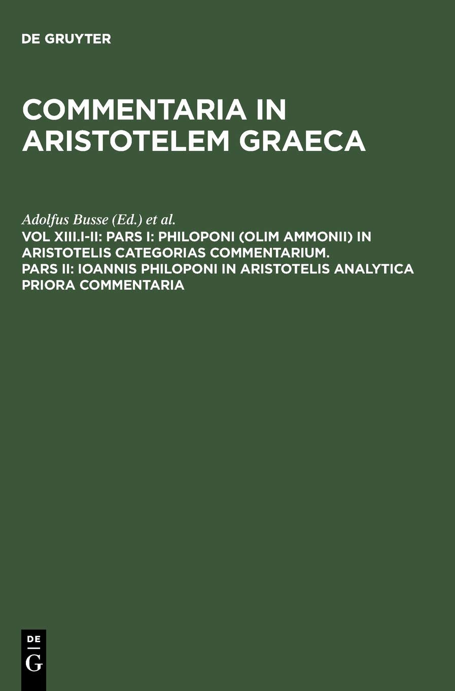 Pars I: Philoponi (olim Ammonii) in Aristotelis Categorias commentarium. Pars II: Ioannis Philoponi in Aristotelis analytica pri,Used