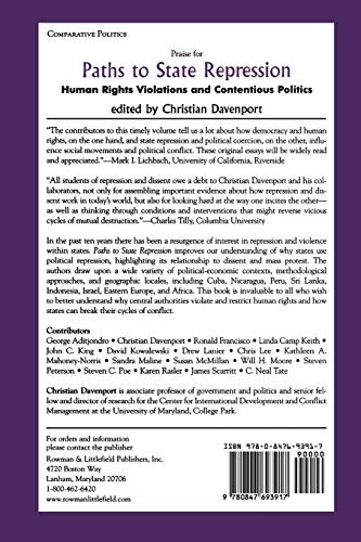 In the last ten years, there has been a resurgence of interest in repression and violence within states. Paths to State Repression improves our understanding of why states use political repression, highlighting its relationship to dissent and mass protest. The authors draw upon a wide variety of politicaleconomic contexts, methodological approaches, and geographic locales, including Cuba, Nicaragua, Peru, Sri Lanka, Indonesia, Israel, Eastern Europe, and Africa. This book is invaluable to all who wish to better understand why central authorities violate and restrict human rights and how states can break their cycles of conflict.
