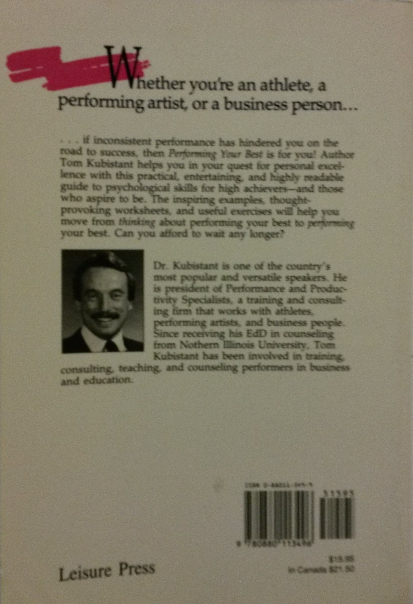 Dr. Tom Kubistant teaches readers how to improve performance by setting realistic goals, using concentration and mental rehearsal, and minimizing stress.