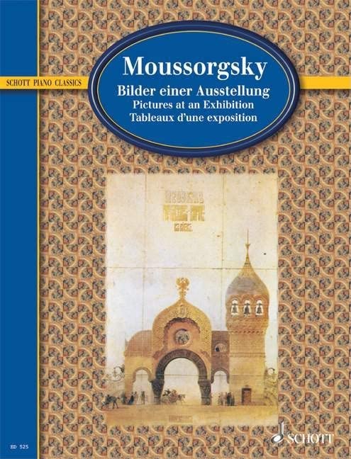 (Schott). In 1874, Mussorgsky wrote his famous piano cycle inspired by an exhibition of pictures by his friend Viktor Hartmann. The resources of musical realism are used to describe the ten pictures in great detail; the interposed Promenades then reflect the subjective impressions and feelings of the visitor looking at the pictures. This edition is based on Mussorgsky's original score, with the addition of a few markings apparently overlooked by the composer, inserted in brackets. Fingerings have been added, together with the original comments on individual pieces from the first edition. These comments by the art critic Vladimir Stassov, the organizer of the exhibition, outline the programmatic nature of the musical composition.
