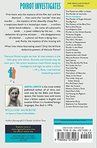 Poirot Investigates a host of murders most foulas well as other dastardly crimesin this intriguing collection of short stories from the oneandonly Agatha Christie.First there was the mystery of the film star and the diamond . . . then came the suicide that was murder . . . the mystery of the absurdly cheap flat . . .a suspicious death in a locked gun room . . . a million dollar bond robbery . . . the curse of a pharaohs tomb . . . a jewel robbery by the sea . . . the abduction of a prime minister . . . the disappearance of a banker . . . a phone call from a dying man . . .and, finally, the mystery of the missing will.What links these fascinating cases? Only the brilliant deductive powers of Hercule Poirot!