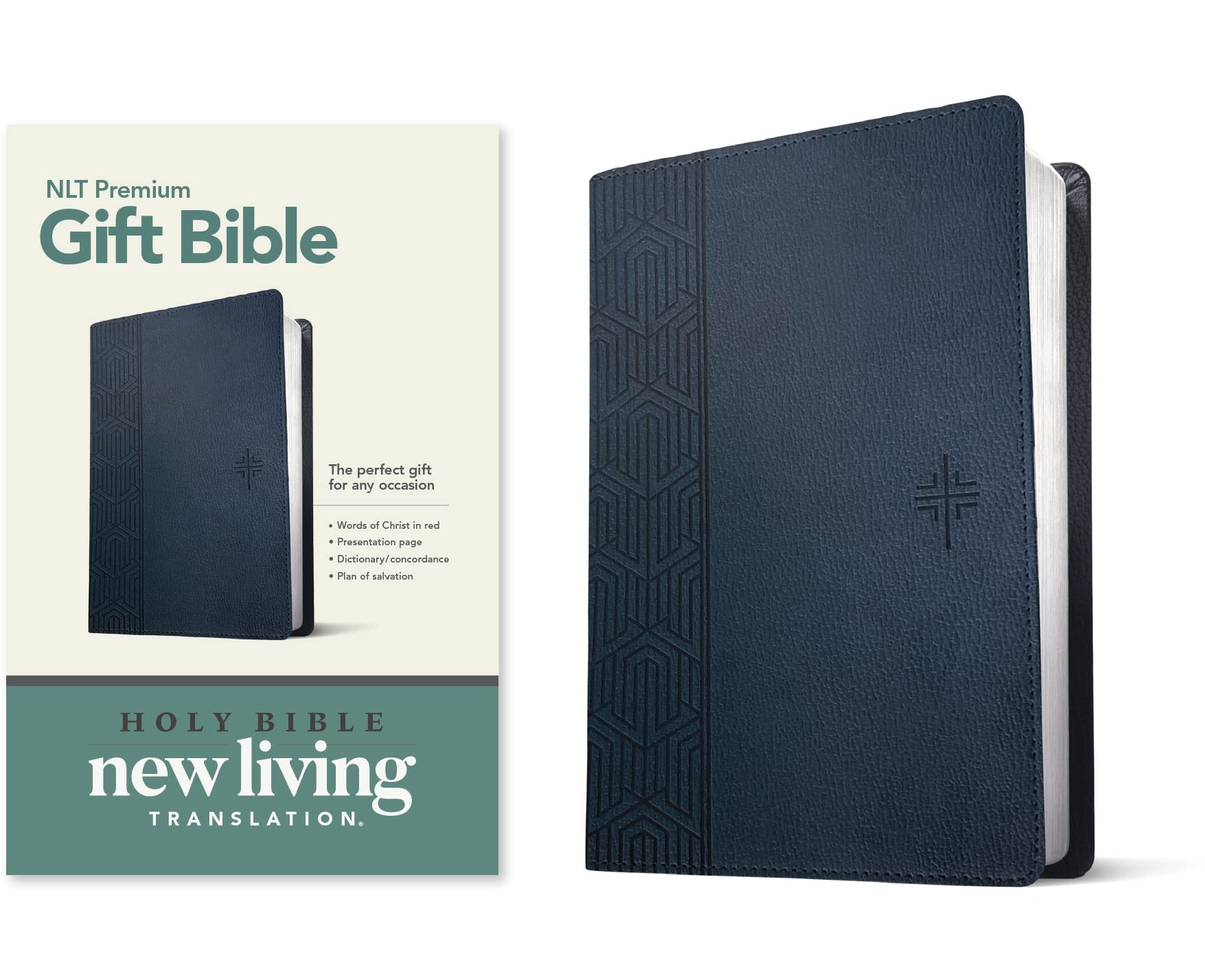 Recipient of the ECPA Platinum Award with over 1 Million Copies Sold!The Perfect Gift BibleThe New Living Translation Premium Gift Bible offers todays most popular features, including book introductions, a dictionary/concordance, and a durable binding, at an affordable price. Its perfect for individual gift giving or for churches.The New Living Translation is a clear and trusted English translation of the Bible. It conveys the precise meaning of the original languages in a flowing, effortless writing style that promotes comfortable and meaningful reading.Other features include:Words of Jesus in red Introduction to the Bible