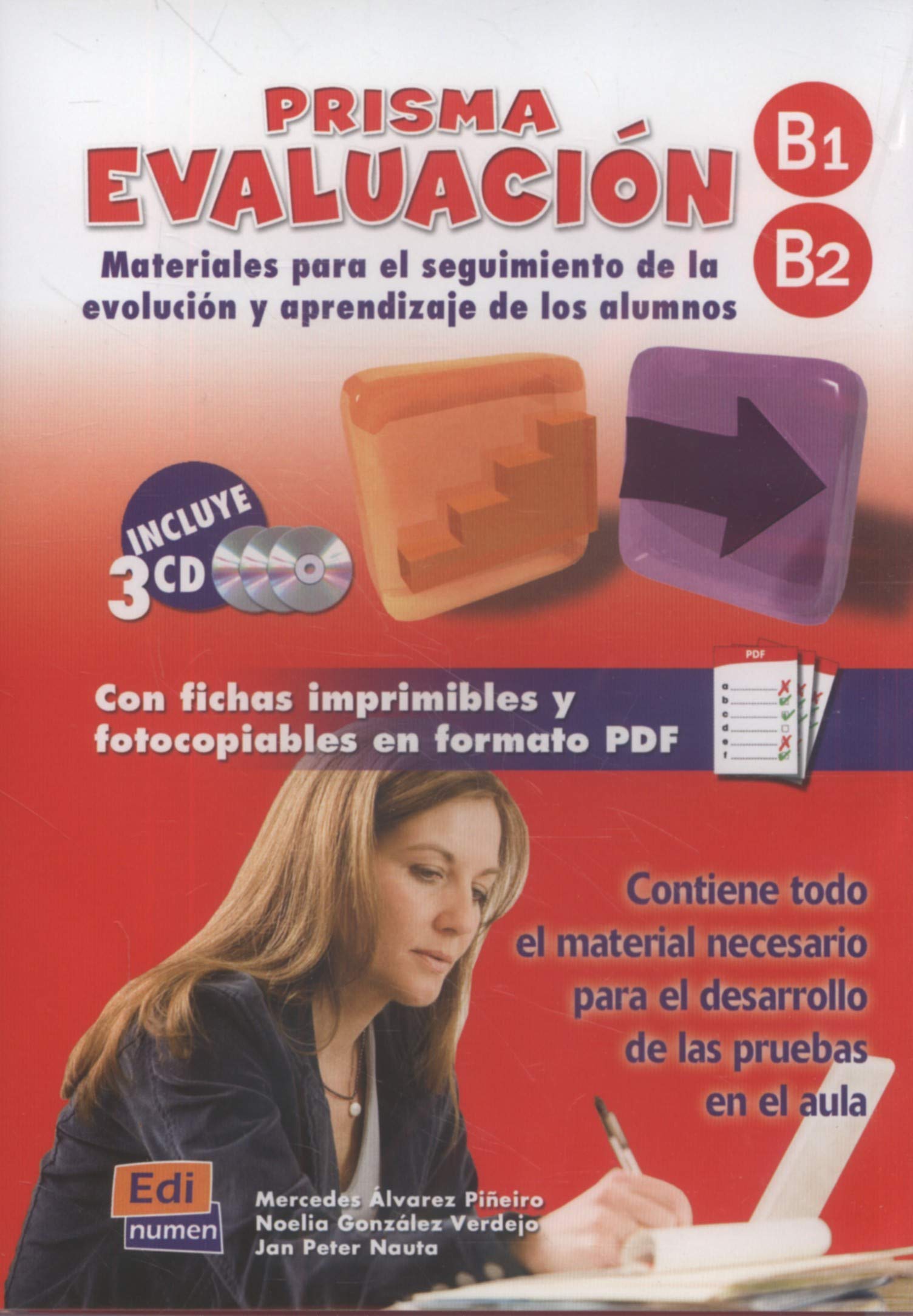 Prisma evaluacin B1 / B2 Nivel intermedio con la fusin de los niveles B1 y B2, donde se trabajan los contenidos ms relevantes de cada nivel. Sigue las pautas del Marco comn europeo de referencia, ana diferentes tendencias metodolgicas desde una perspectiva comunicativa y persigue atender a la diversidad de discentes y docentes. Material de evaluacin para el profesor con instrucciones para su manejo, claves de las pruebas escritas y orales y material fotocopiable para entregar al estudiante. Para el profesor, disponer de estos materiales significa un ahorro considerable de tiempo as como la oportunidad de tener en cuenta los resultados y opiniones de los estudiantes. Por su parte, el alumno dispondr de instrumentos para medir sus progresos, mejorar sus estrategias de aprendizaje y, con ellas, sus resultados. Incluye pruebas escritas donde los estudiantes trabajan la comprensin auditiva y lectora, la expresin escrita y la gramtica y el vocabulario estudiados. La prueba oral conlleva el material fotocopiable a entregar a los estudiantes para trabajar la expresin e interaccin oral. Tambin incluye un CD con nuevas audiciones del nivel y los contenidos trabajados. Material para evaluar los conocimientos de los estudiantes. Estructura: En Prisma evaluacin B1 y B2 profesores y alumnos podrn encontrar: Pruebas de control con las que se pretenden medir los conocimientos y destrezas del alumno. Exmenes de aprovechamiento en los que el estudiante deber aplicar sus conocimientos, destrezas y estrategias a nuevas situaciones de comunicacin. Evaluaciones donde se le brinda la oportunidad de expresarse sobre su proceso de aprendizaje y la enseanza que recibe. Adems, para el nivel B2 se incorpora una prueba de acceso que funciona como diagnstico o prueba de nivel para determinar si el estudiante dispone de suficientes conocimientos y destrezas para acceder a este nivel.