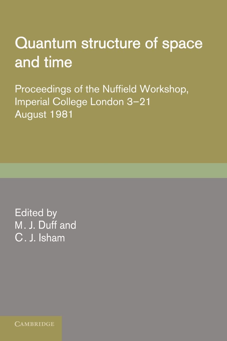 This book was first published in 1982. It consists of selected contributions presented at the Nuffield Quantum Gravity Workshop held at Imperial College, London, in August 1981. The book is divided into three parts which correspond with the three separate themes pursued at the workshop. Part I is concerned with the geometrical and topological aspects of quantum gravity. Part II focuses on supergravity and its application to the Grand Unified Theories of elementary particles. Part III concentrates on the early universe and cosmology. The book, therefore, covers not only supergravity, but the whole spectrum of quantum gravity research.