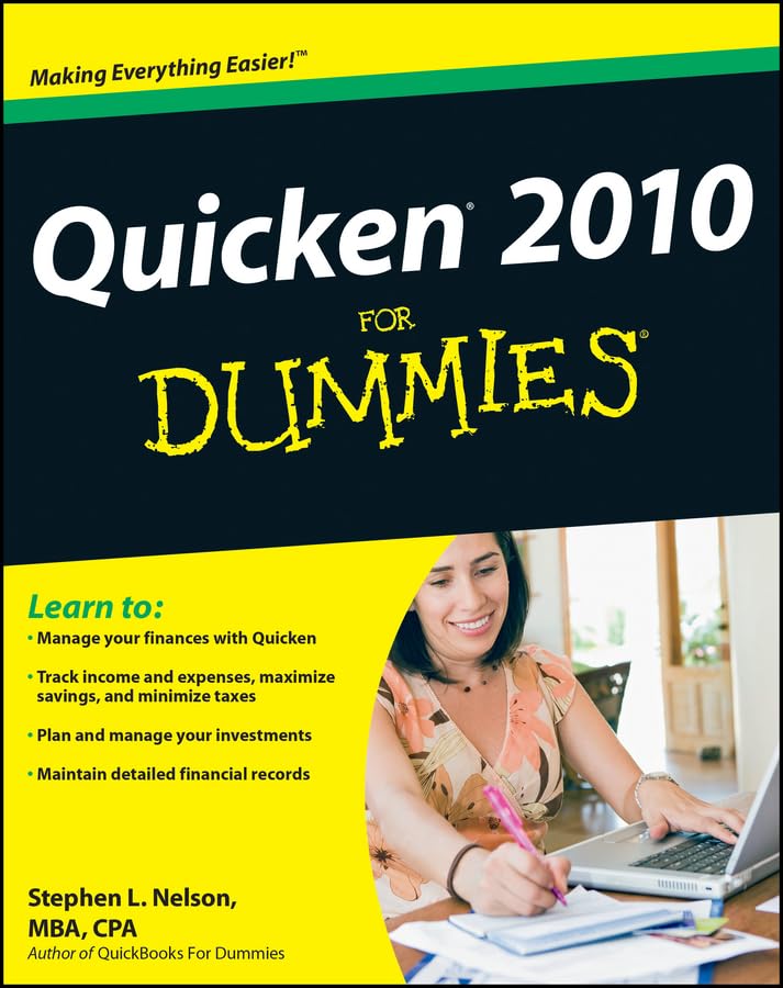 This classic bestseller has been thoroughly updated for the newest version of QuickenWho doesn't have questions about managing finances these days? Stephen Nelson translates his years of expertise as a CPA and tax expert into this plainEnglish guide that shows you how to manage your finances with the nation's leading personal finance software, Quicken. Trying to keep track of your credit card expenditures? Starting to save money for a college fund? Managing your household expensess? Steve's straightforward advice shows you how to take control of your money, without being an accounting wizard. Discover how to Get started with Quicken and maintain your checkbook on your computer Access your account information and pay bills online Manage your 401(k), IRA, stocks, and bonds Get up to speed on the new enhancements and changes in Quicken 2010 Track your deductions and plan for tax time Capture your small business and personal expenses in one placeSpend less time crunching numbers and more time making the most of your money with this perennial For Dummies bestseller on Quicken.