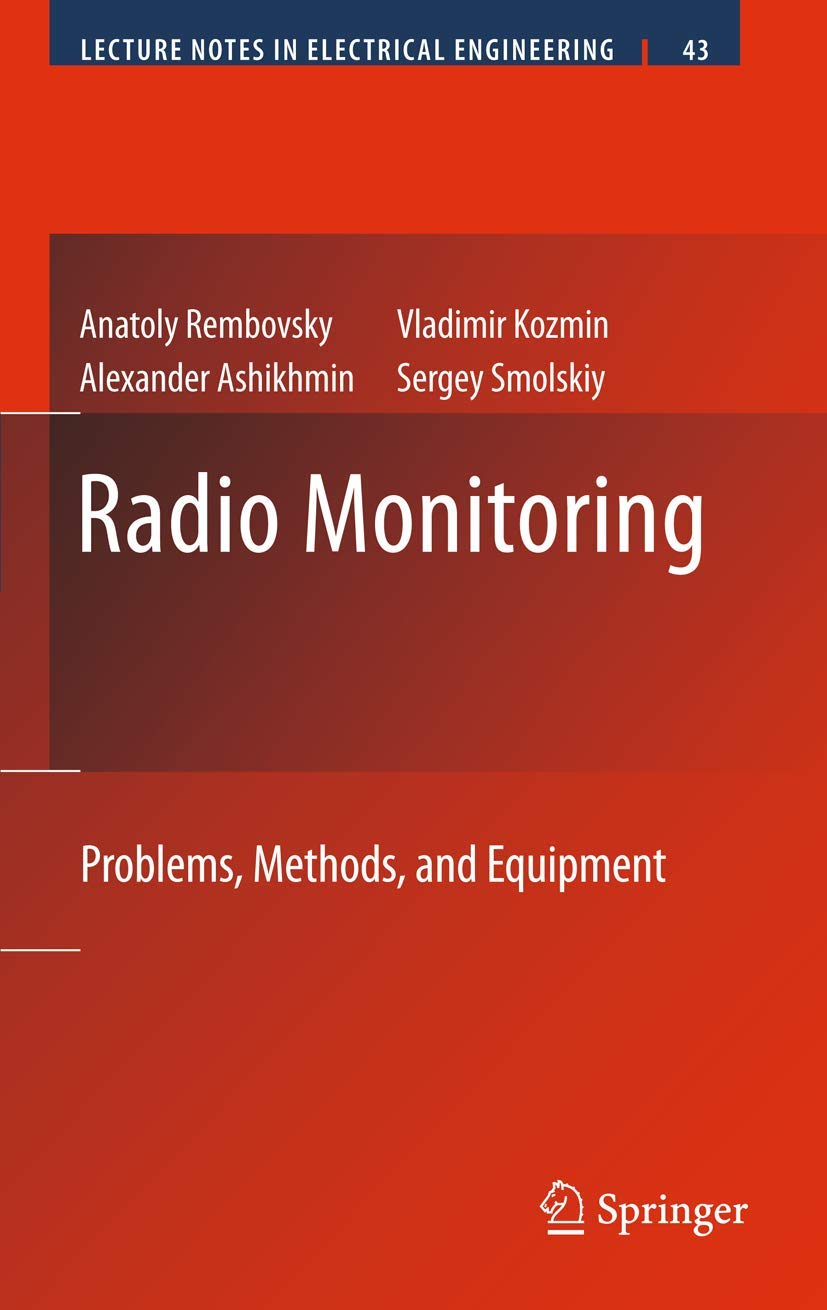 Radio Monitoring: Problems, Methods, and Equipment offers a unified approach to fundamental aspects of Automated Radio Monitoring (ARM). The authors discuss the development, modeling, design, and manufacture of ARM systems. Data from established and recent research are presented and recommendations are made on methods and approaches for solving common problems in ARM. The authors also provide classification and detailed descriptions of modern highefficient hardwaresoftware ARM equipment, including the equipment for detection, radio directionfinding, parameters measurement and their analysis, and the identification and localization of the electromagnetic field sources. Examples of ARM equipment structure, applications, and software are provided to manage a variety of complicated interference environment in the industrial centers, inside of the buildings, and in the open terrain. This book provides a reference for professionals and researchers interested in deploying ARM technology as a tool for solving problems from radio frequency spectrum usage control.